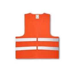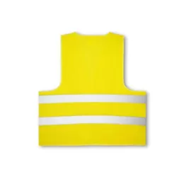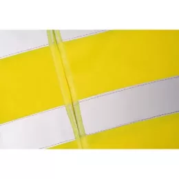 Colete de alta visibilidade em 100% poliéster com certificado pela norma EN ISO 20471 classe 2. Colete refletivo com 2 bandas refletoras horizontais e abertura frontal com fecho de velcro. Tamanho único: 670 x 700 mm