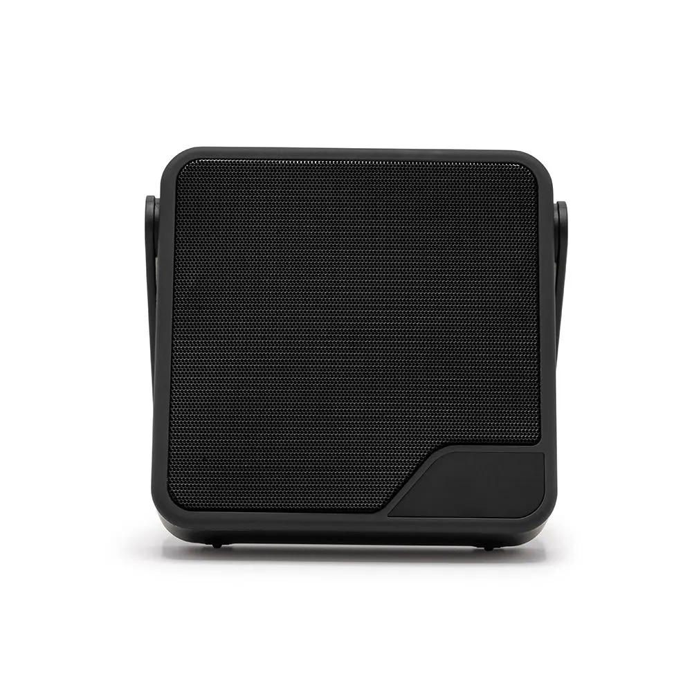 Coluna portátil em ABS 100% reciclado com proteção à prova d’água IPX7. Desfrute de uma qualidade de som superior graças aos graves profundos e aos 5W de potência sonora. O sistema TWS permite obter uma experiência mais imersiva, pois permite conectar 2 colunas Dipster em simultâneo, funcionado em estéreo uma como o canal esquerdo e outra como o direito. Graças à bateria de grande capacidade, 1.800mAh, permite um tempo de reprodução aproximado de 11 horas. O microfone incorporado permite que esta coluna seja usada para fazer chamadas telefónicas, como dispositivo de áudio para vídeo conferências e a integração com o assistente de voz Siri. Incluso cabo USB-A para USB-C para carregamento da bateria. Fornecido em caixa presente de papel kraft reciclado. A grelha e a pequena placa são fornecidas soltas para pedidos não personalizados. Através de UV Digital é possível personalizar toda a área da grelha, assim como a pequena placa do canto inferior direito. 131 x 125 x 28 mm