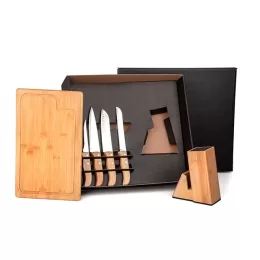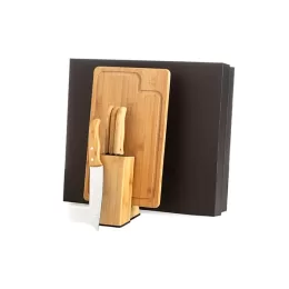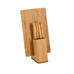 Conj. Cozinha Com Cepo Em Bambu / Inox 6 Pçs SMKT-90163