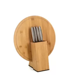 Conjunto Queijo Com Cepo Em Bambu / Inox 6 Pçs SMKT-90161