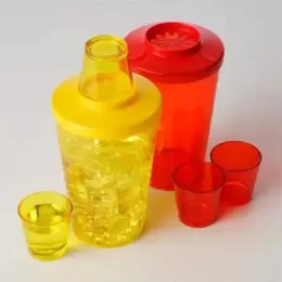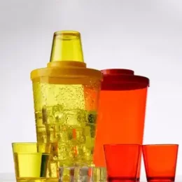 Copo de caipirinha personalizado, com capacidade de 750 ml e cores variadas. Incluso tampa com peneira e copo shot. Brinde de baixo custo com boa área de impressão do logotipo de empresas e parceiros de negócios.