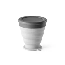 Copo de viagem dobrável em silicone com tampa em PP. Contém uma argola na base que serve como pega ou para pendurar. Copo com capacidade até 240 ml. ø57 x 87 x 81 mm