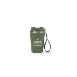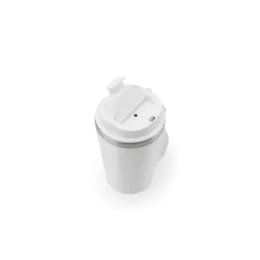 Copo de viagem em PP e aço inox 90% reciclado, com parede dupla e acabamento em mate. A tampa em PP é à prova vazamento e incorpora uma pega, em PU e PET, que facilita o seu transporte. Capacidade até 460 mL. Fornecido em caixa presente de papel kraft reciclado. Certificação EU Food Grade. ø88 x 148 mm