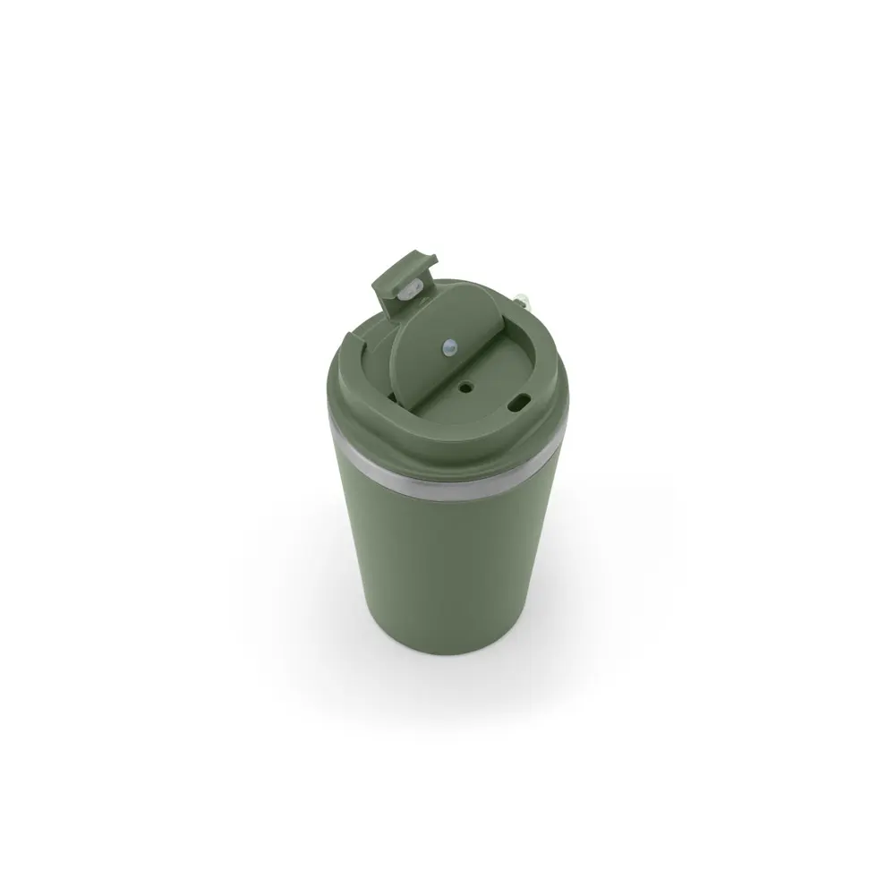 SPITZ. Copo de viagem em aço inox 90% reciclado com parede dupla e acabamento em mate 460 mL