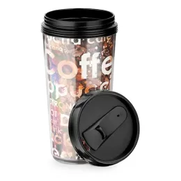 Copo de viagem. PP e PS. Com corpo duplo. Capacidade: 520 ml. Food grade. Caixa branca 94654 vendida opcionalmente. ø86 x 168 mm