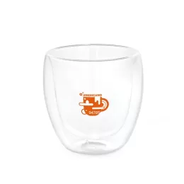Copo de vidro isotérmico com parede dupla isolada a ar e capacidade até 220 ml. Food grade. Fornecido em caixa de oferta personalizável. ø80 x 86 mm