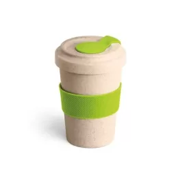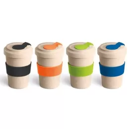 Fibra de bambu e PP. Com banda de silicone e tampa. Capacidade até 500 ml. Food grade. ø95 x 140 mm