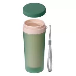 Descrição: Copo de plástico polipropileno com capacidade para 350ml livre BPA, parede dupla. Acompanha tampa rosqueável e alça de nylon para transporte.