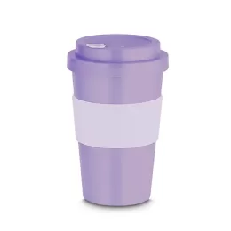 Copo plástico produzido em Plástico RPET, com capacidade de 400ml, tampa rosqueável e detalhe em silicone.