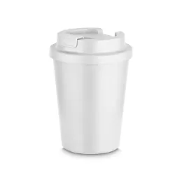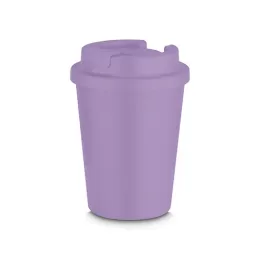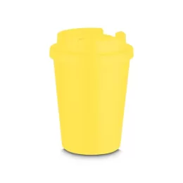 Copo plástico produzido em Plástico RPET, permitindo ir ao microondas, com capacidade de 400ml, tampa rosqueável.