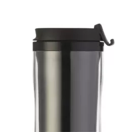 Descrição: Copo plástico 350ml porta foto. Possui tampa plástica com “alavanca” para abrir/fechar compartimento para beber. Copo preto em pvc, basta rosqueá-lo para tirar da base acrílica. Copo acrílico com o fundo externo emborrachado. Para colocar a foto basta envolver o papel sob o copo preto e encaixá-lo sob a base acrílica.