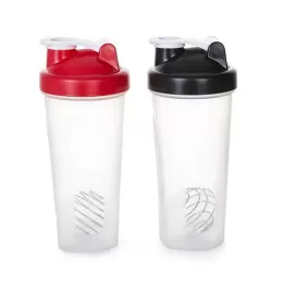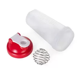 Coqueteleira Shake 600ml plástica. Possui medidas em ml e oz, detalhes em relevo nas laterais e mola para misturar. Tampa de rosca e trava na própria tampa, basta levantar para beber.
