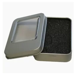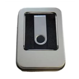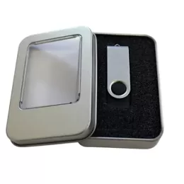 Embalagem de Metal com Visor, a tampa da caixa tem um visor grande e também uma ampla área de gravação, possibilitando a impressão do pen drive personalizado no mesmo logo da caixinha, formando um lindo conjunto para encantar seus clientes além de ser perfeito para sua campanha ou evento. A embalagem vem com um estofamento em espuma, para adaptar seu pen drive, posicionando sua logo de frente para o visor de exibição e manter a segurança da peça durante o transporte. Em metal liso e aderente a Gravação a Laser em alta resolução destacando a sua marca e valorizando ainda mais a sua empresa.