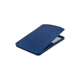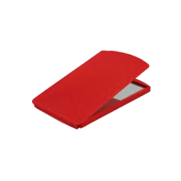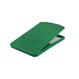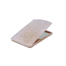 Espelho de bolsa Eco Sustentável, portátil, formato retangular com tampa protetora articulada, feito com 50% de fibra de madeira e 50% em Plástico Premium (PP), agora disponível em 6 cores especiais que utilizam pigmentos orgânicos na fabricação.