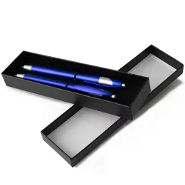 Estojo de papelão para duas canetas. Parte interna revestida com veludo e possui elástico para fixar as canetas. OBS.: NÃO ACOMPANHA CANETA. FOTO ILUSTRATIVA.