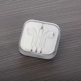 Fone de ouvido P2 com microfone e controle de volume, possui cabo emborrachado e estojo de acrílico.