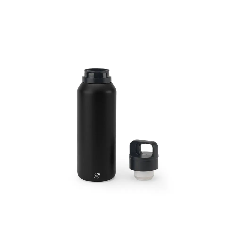 NICKLAUS. Garrafa em aço 91% inoxidável com parede dupla isolada a vácuo e botão que facilita sua abertura 590 mL