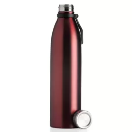 Descrição: Garrafa de inox 1,1 litros com tampa rosqueável e alça plástica para transporte.