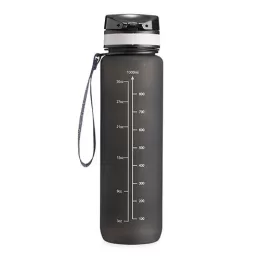 Descrição: Garrafa plástica de 1 litro com tampa de acionamento automático e trava de segurança. Acompanha cordão de nylon.