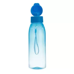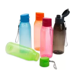 Descrição: Garrafa plástica 700ml livre de BPA. Garrafa de polipropileno transparente colorida com detalhe superior em relevo, possui tampa rosqueável com abertura de bocal. Acompanha alça de nylon, pode ser encaixado no suporte da tampa.