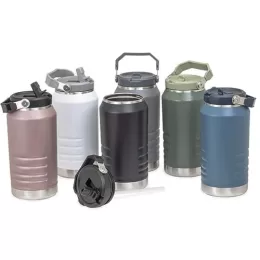Descrição: Garrafa térmica feita em inox 304 com parede dupla, capacidade de 1,1 litros. Com alça para transporte, a tampa contém bico flip e canudo interno.