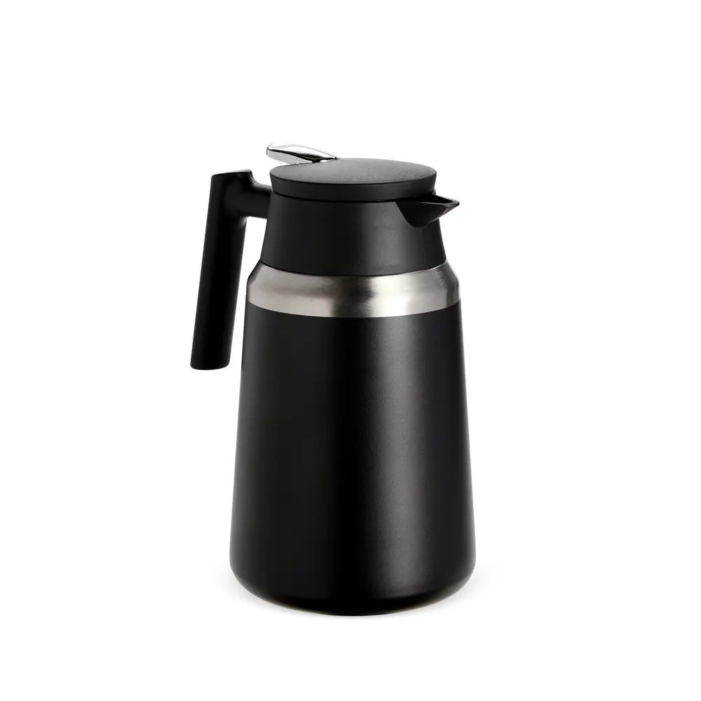 Garrafa térmica feita em inox com cabo e bico em plástico resistente, base emborrachada antiderrapante e capacidade máxima de 1,5 litro. com acionamento por pressão para servir o conteúdo. Apresenta estrutura de parede dupla e isolamento a vácuo, que conserva a temperatura dos líquidos por mais tempo.