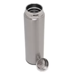 Descrição: Garrafa térmica 500ml em inox com parede dupla, infusor e tampa rosqueável com detalhe em madeira.
