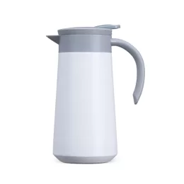 Descrição: Garrafa Térmica feita em Inox 304 com parede dupla e capacidade de 800m. Tampa rosqueável com alavanca que abre/fecha para servir a bebida.