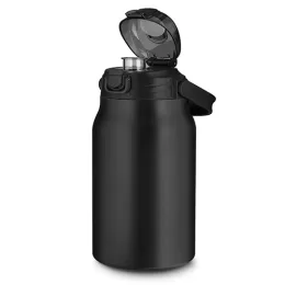 Garrafa térmica em aço inox com parede dupla isolada a vácuo,com capacidade de até 1,5l com pintura fosca na parte externa. Além de garantir a temperatura ideal do líquido por horas, é muito fácil de ser transportada por sua alça superior que torna o uso desse potente recipiente muito mais simples. Tampa rosqueável, bico removível trazendo possibilidades de uso com anel de silicone na tampa para vedação.