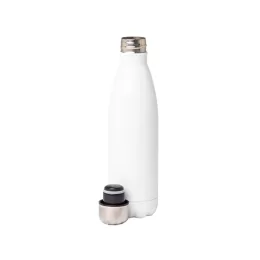Descrição: Garrafa térmica feita em inox 304, com capacidade de 500ml. O seu acabamento em um tom brilhante se sobressai entre outros acessórios e itens de uso diário.