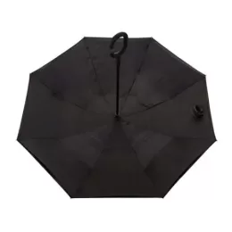 Guarda-chuva Invertido 2078 com forro interno. Tecido de nylon impermeável externo(preto) e interno(colorido), possui um mecanismo inovador que permite ao usuário não se molhar ao entrar e sair de ambientes devido sua abertura invertida, quando feito o movimento de fechar as varetas inverterão para cima criando um formato circular impedindo a chuva de alcançar o usuário, assim ele pode “segurar” a chuva enquanto entra/sai de um ambiente e depois basta virar o guarda-chuva para escorrer a água. Seu forro interno também serve para preservação das 8 varetas, evitando seu contato com a água e assim prolongando seu tempo de uso sem enferrujar. Ao impulsionar o fechamento invertido fica mais rápido e prático o modo de secar e ser guardado, pode ser apoiado no chão que permanecerá em pé para escorrer a água. Pegador plástico em formato C, botão acionador vermelho e fita com velcro para lacre.