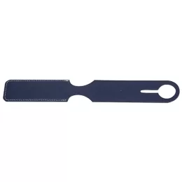 Tag identificador de bagagem em couro sintético. Parte frontal com abertura para visor plástico e verso liso.