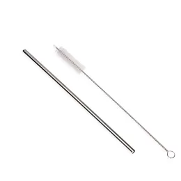Descrição: Kit com canudo reto em aço inox e escova de limpeza reutilizável em inox com ponteira plástica e cerdas sintéticas.