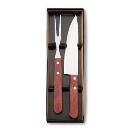 Descrição: Aproveite seus momentos de churrasco com o Kit Churrasco 2 Peças. Este conjunto vem em um estojo de papel kraft. O kit inclui uma faca de 7 polegadas e um garfo, ambos em inox com cabos de madeira. Um churrasco de respeito merece utensílios de qualidade!