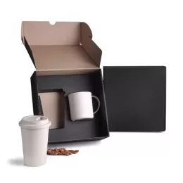 Uma gravação em Silkscreen no copo e na caneca.