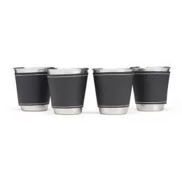 Descrição: Para quem aprecia bons drinks na companhia dos amigos, este Kit Copo Inox 50ml com 4 peças é a escolha perfeita! Ideal para saborear doses pequenas, como tequila, shots ou outras bebidas de sua preferência. Os quatro copos têm acabamento em couro sintético, proporcionando um toque sofisticado e confortável ao segurar. Para completar, o kit inclui um case em couro sintético, permitindo armazená-los de forma empilhável, economizando espaço e tornando-o super portátil, perfeito para aquele evento inesperado, encontros ou momentos especiais com os amigos.