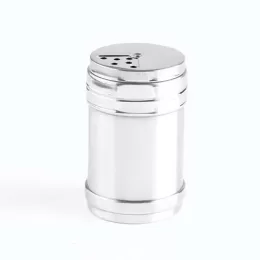 Kit contendo dois potes de aço inox para tempero com tampa giratória acomodados em uma embalagem para presente.
