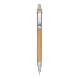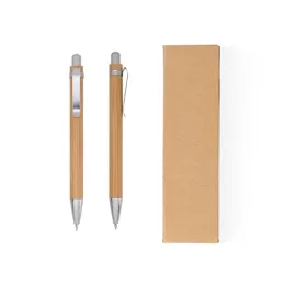 Descrição: Kit ecológico caneta e lapiseira em bambu com estojo de papelão. Caneta bambu com clip metálico, aciona por clique. Lapiseira bambu com clip metálico, aciona por clique.