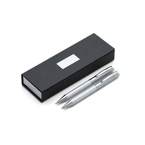 Medidas aproximadas para gravação (CxL): 4,5 cm x 12 cm (estojo) – 0,8 cm x 9 cm (caneta e lapiseira)