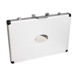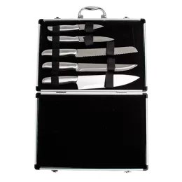 A solução ideal para quem valoriza qualidade nos cortes e organização na cozinha. inoxidável, com diferentes tamanhos, perfeitas para uma experiência gourmet. Acompanha uma maleta de alumínio texturizado, com interior revestido de veludo e duas travas que garantem maior segurança. Além disso, a maleta oferece espaço para personalização, tornando o kit ainda mais exclusivo.
