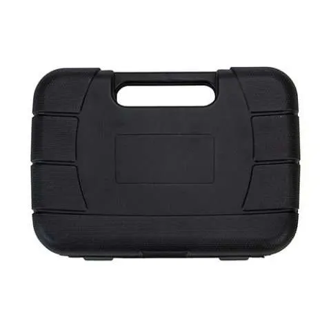 Descrição: Kit ferramenta 8 peças em estojo plástico. Maleta plástica com detalhe retangular no centro frontal e verso liso, possui texturização no estojo e duas travas superiores. Acompanha: fita isolante, martelo, alicate, chave Philips, chave teste, chave de fenda, trena 2 metros e estilete.