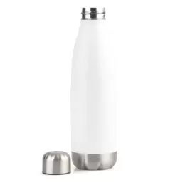 DESCRIÇÃO: Kit garrafa e caneca. Conta com garrafa em aço inox branca com tampa rosqueável e caneca em cerâmica branca.