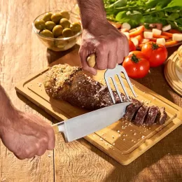 Uma gravação a Laser na lâmina da faca e no garfo de 4 dentes.