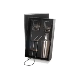 Uma gravação a Laser nas copos; Silkscreen na coqueteleira.