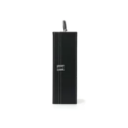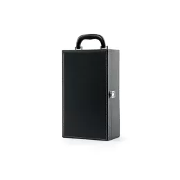 Descrição: Kit vinho 4 Peças em maleta de couro sintético com duas repartições para garrafas. Contém saca-rolhas metálico, bico condutor com tampa, cortador de lacre e wine collar. Maleta com alça e trava de segurança, área interna revestida de veludo com suporte em couro sintético e velcro em cada repartição para fixação das garrafas.