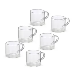 Descrição: Um kit com seis xícaras em estilo clássico para servir uma bebida quente de um jeito especial. Com capacidade máxima de 100ml, cada uma delas é feita em vidro borossilicato, matéria-prima conhecida por sua durabilidade e resistência, o que as transformam em opções excelentes para tomar aquela dose de café ou chá a qualquer hora do dia.