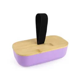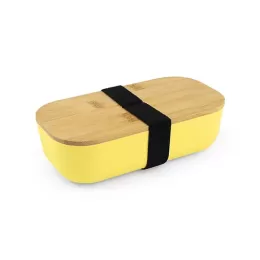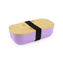 Lancheira plástica em RPET com tampa de bambu, possui alça elástica para fechamento. Capacidade de até 700ml. O recipiente pode ser utilizado no micro-ondas e na lava-louças, exceto a tampa.