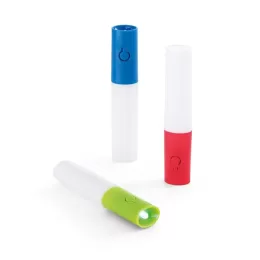 ABS e AS. Com 2 LEDs e 3 modos de luz, incluindo efeito fluorescente. Incluso 3 pilhas LR41. 22 x 18 x 120 mm