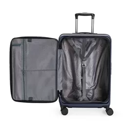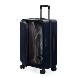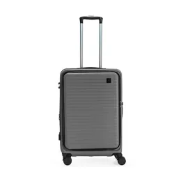 Descrição: Mala de 49 litros, resistente e funcional! Produzida em plástico ABS, conta com cadeado numérico TSA embutido para mais segurança. Seu design inteligente traz abertura frontal com divisórias internas de zíperes e cinta compressora para roupas. Precisa de mais espaço? O zíper externo expansível se encarrega de ampliar a capacidade da mala. Para facilitar o transporte, possui puxador retrátil de 3 estágios, duas alças de mão, apoios e ganchos laterais e rodinhas 360º, proporcionando mobilidade total. Acompanha plaquinha metálica grafite personalizável.