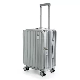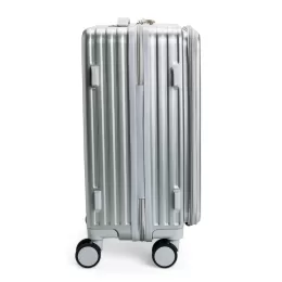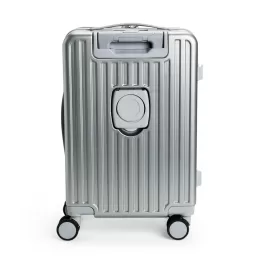 Descrição: Mala de viagem feita em policarbonato (PC) com capacidade de até 32 litros. Apresenta compartimentos internos de difernetes tamanhos, incluindo um bolso telado e outro em plástico para itens molhados. Possui alça superior, alça lateral, puxador retrátil ajustável em dois níveis, quatro rodinhas com rotação de 360 graus, suporte para copo ou garrafa, quatro apoios laterais e cadeado numérico TSA. Dispõe ainda de compartimento frontal com três bolsos em tamanhos variados.